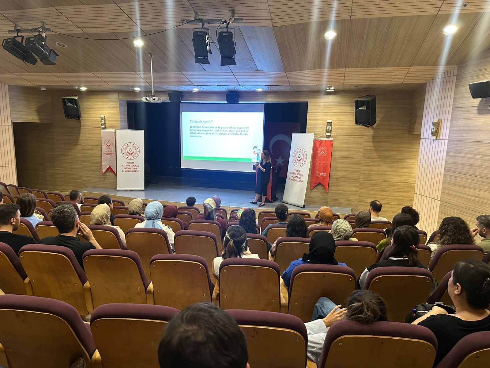 29 Ağustos 2025 tarihinde, Psikoloji Bölümü öğretim üyesi Dr. Öğr. Üyesi Zeynep Çakmak tarafından, Aile ve Sosyal Politikalar İl Müdürlüğü'nde çalışan personele yönelik olarak "Akran Zorbalığı" konusunda eğitim verilmiştir.